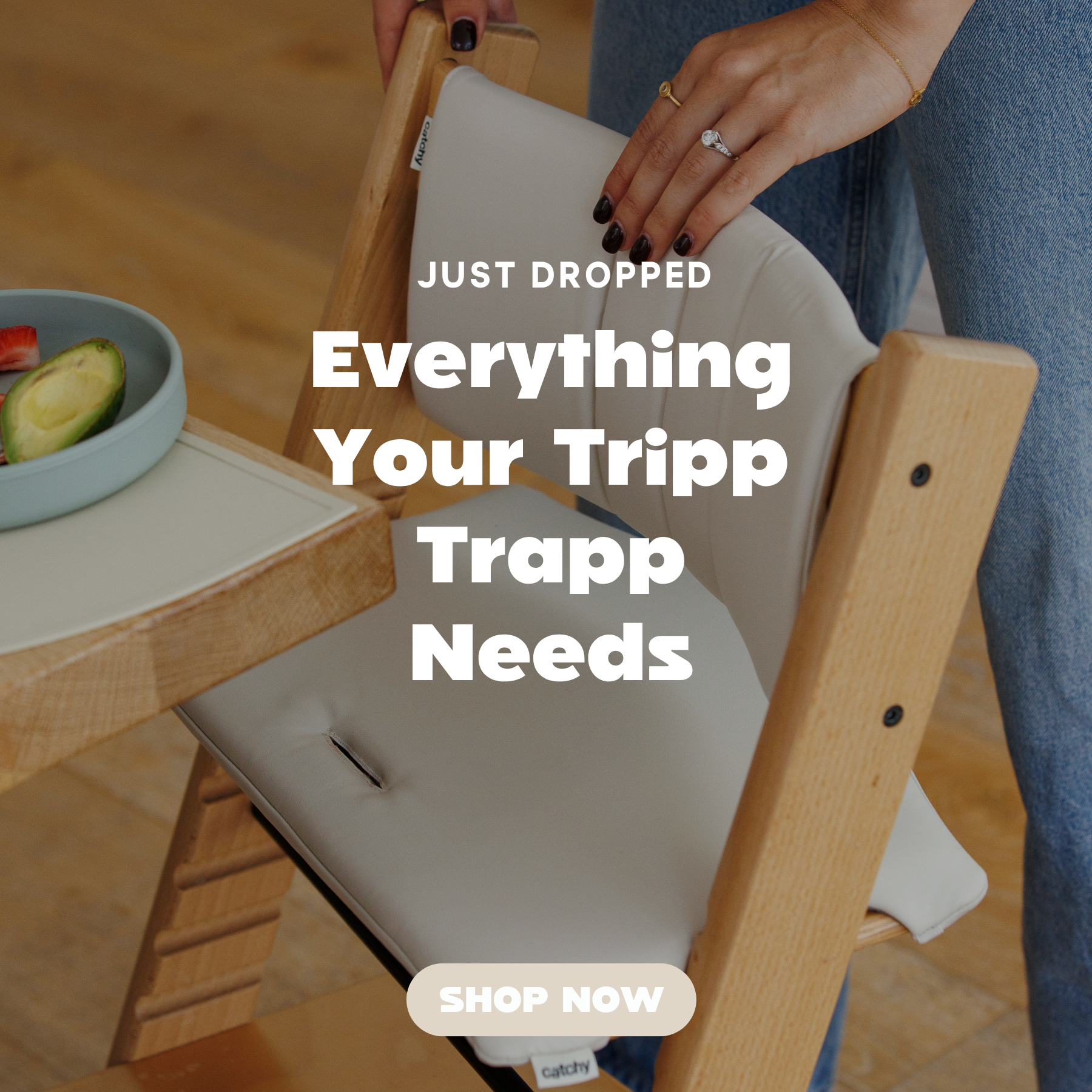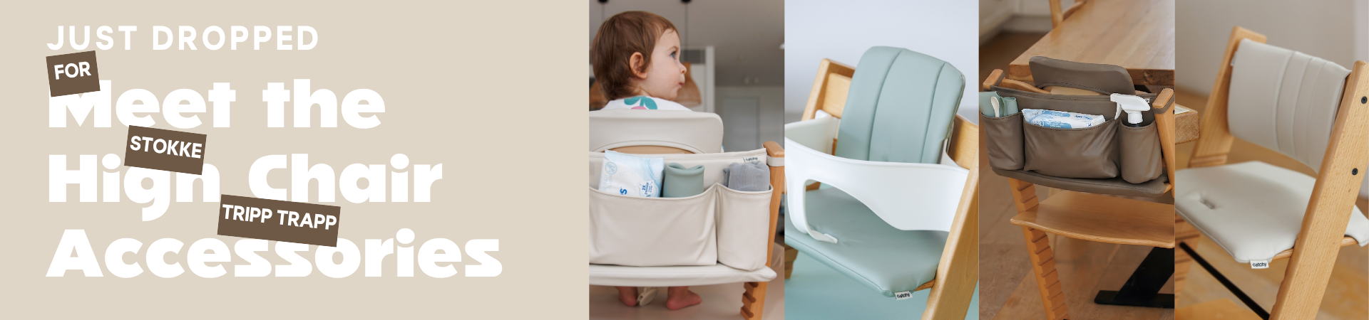 CATCHY - The Food Catcher for High Chairs From $49.95 /WhiteRosewaterSandstone LinenEucalyptusPlayful checkerAlmond houndstoothMocha houndstoothGreyBirchAvailable in 9 colors
