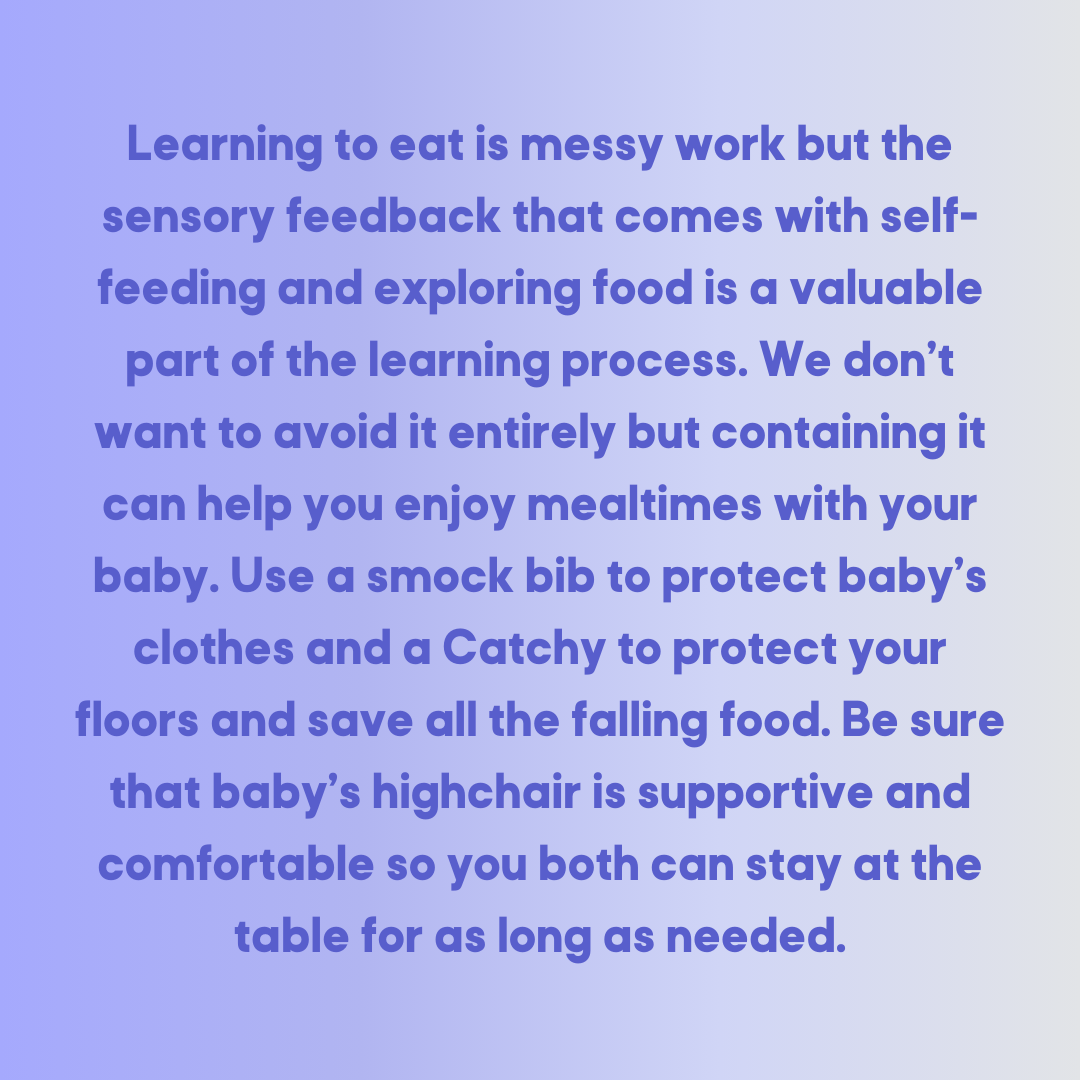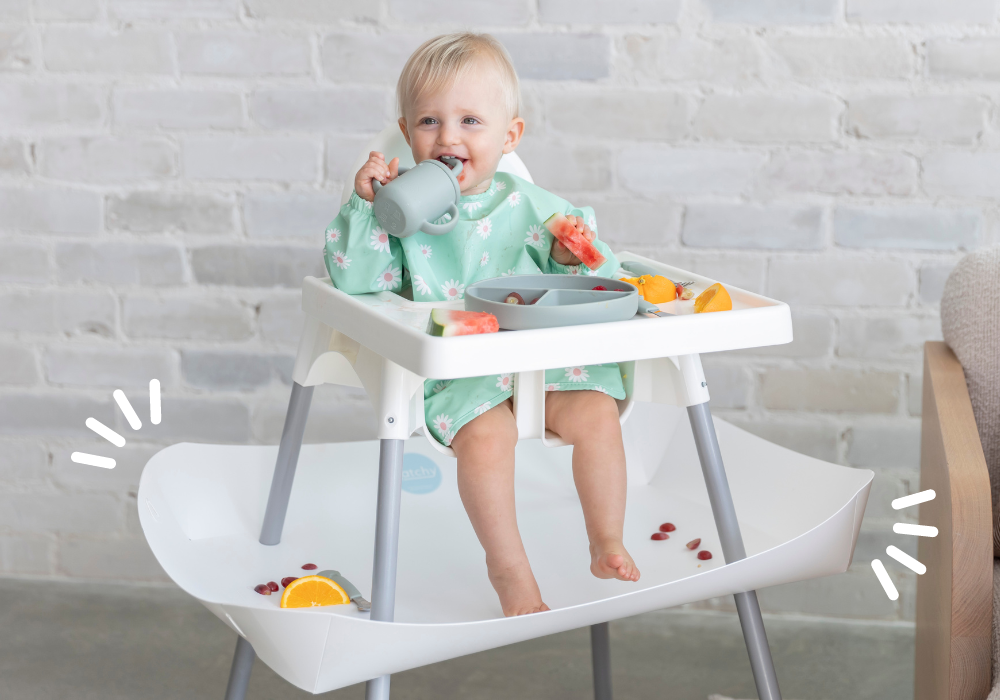 Catchy helps solve both of these problems, keeping food off the floor, which contains the mess and allows you to bring fallen food, cups and cutlery back to baby’s tray for continued eating and exploration. Catchy creates empowered and happy mealtimes for both parents and their children as they learn to self-feed, which we wholeheartedly support.