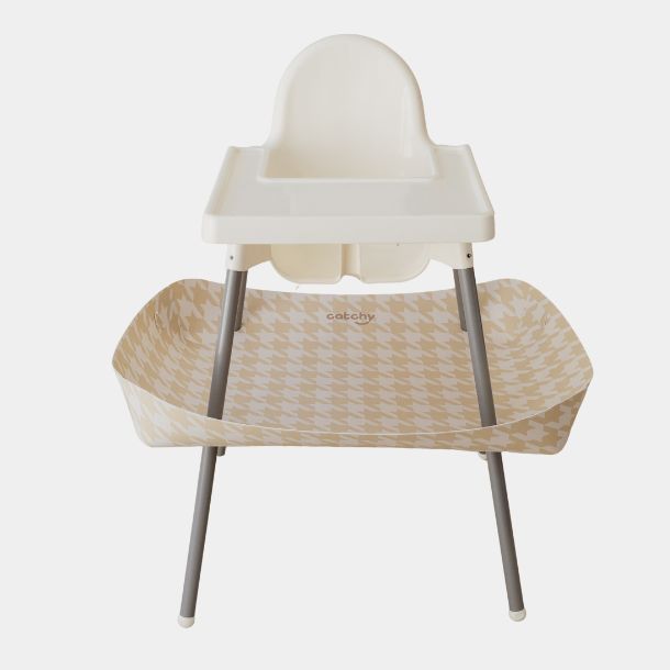 Catchy has been designed to catch the optimum amount of food, whilst comfortably fitting around the contour of the highchair legs so that it doesn't take up much more space than your highchair would, and can therefore fit in small spaces.